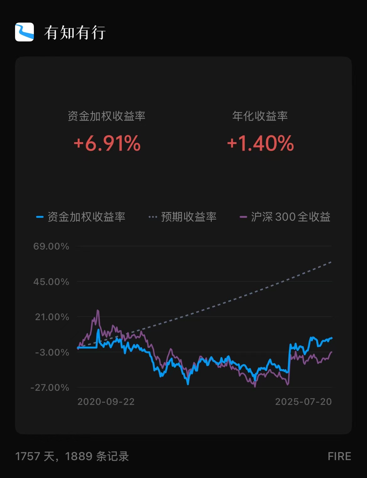 FIRE-202期-20250713 Qian Yi 2025-07-13 投资 FIRE 本周数据概要 投入 4000 收益率 本周: 0.65% / 沪深300:1.32% 本年: 6.25% / 沪深300:3.8 账本 消费 1430(妙控板) 交易无 感想 周日打🎾回来,在红绿灯红灯的时候,走神,没刹住车,轻微的碰了下前面的车。也只是轻微追尾,嗨全责,走了保险。有点麻烦的时候,对面是网约车,可能会涉及陪停运费啥的。 好内容 人间攻略之再也不能这样活 遇到问题不要怕,不然搞得压力大 不是工作变得狗屁,而是世界换了算法